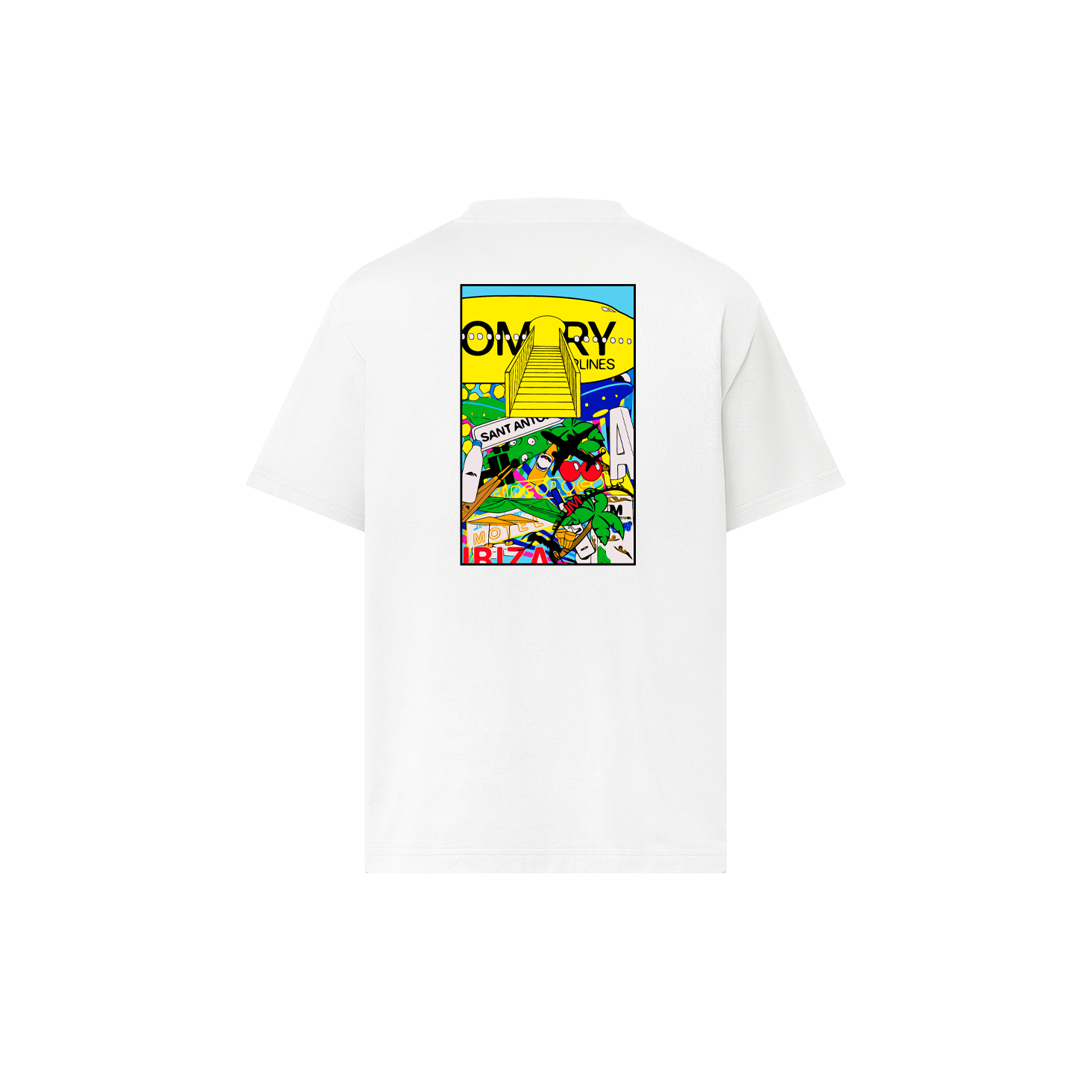This soft white T-shirt is given an artistic twist with a large-scale rear print representing Ibiza's euphoric vibe. The design features exotic drawings inspired by Ibiza, incorporating multiple iconic emblems.
