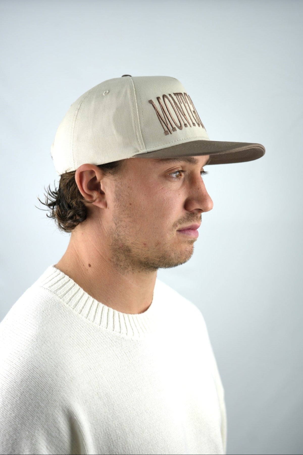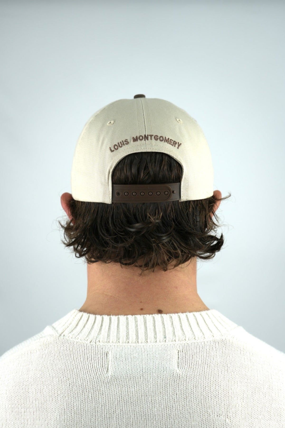- Embroided Louis Montgomery logo above the adjustable back strap