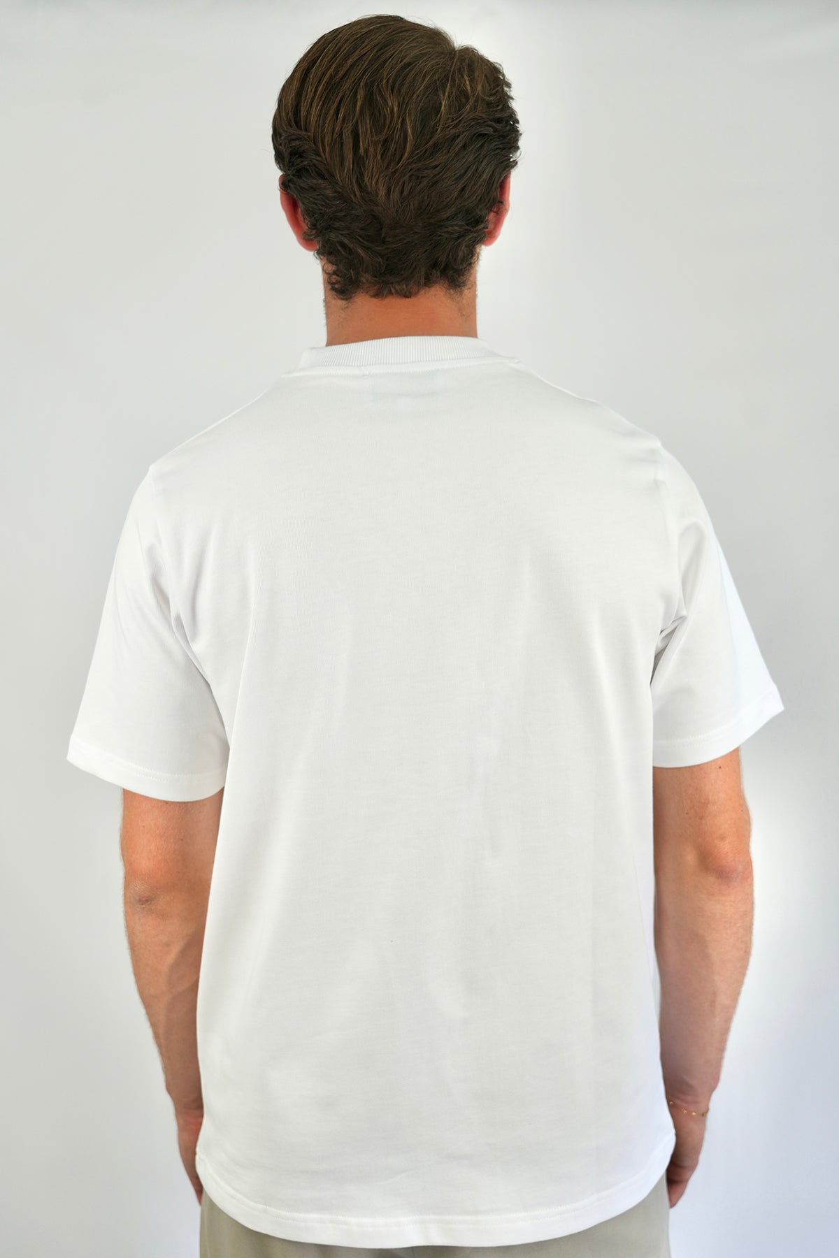 Crafted from heavyweight 300gsm organic cotton, this plain T-shirt features a regular fit with a snug clean neckline. Designed for everyday wear.
