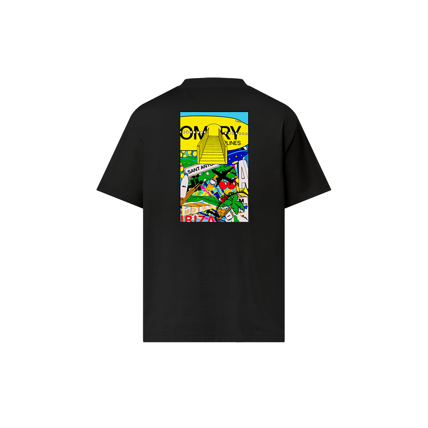 This soft black T-shirt is given an artistic twist with a large-scale rear print representing Ibiza's euphoric vibe. The design features exotic drawings inspired by Ibiza, incorporating multiple iconic emblems.